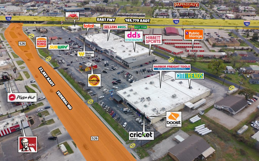 ● Easy access and visibility from East Freeway (I-10) with traffic counts of 163,779 AADT