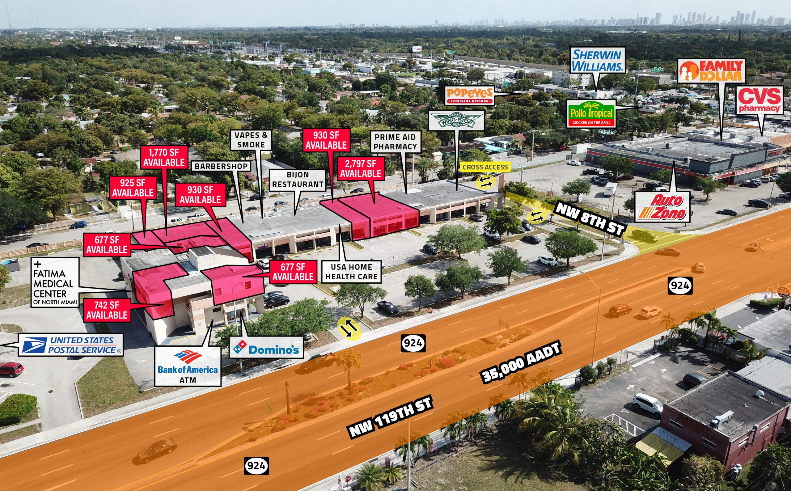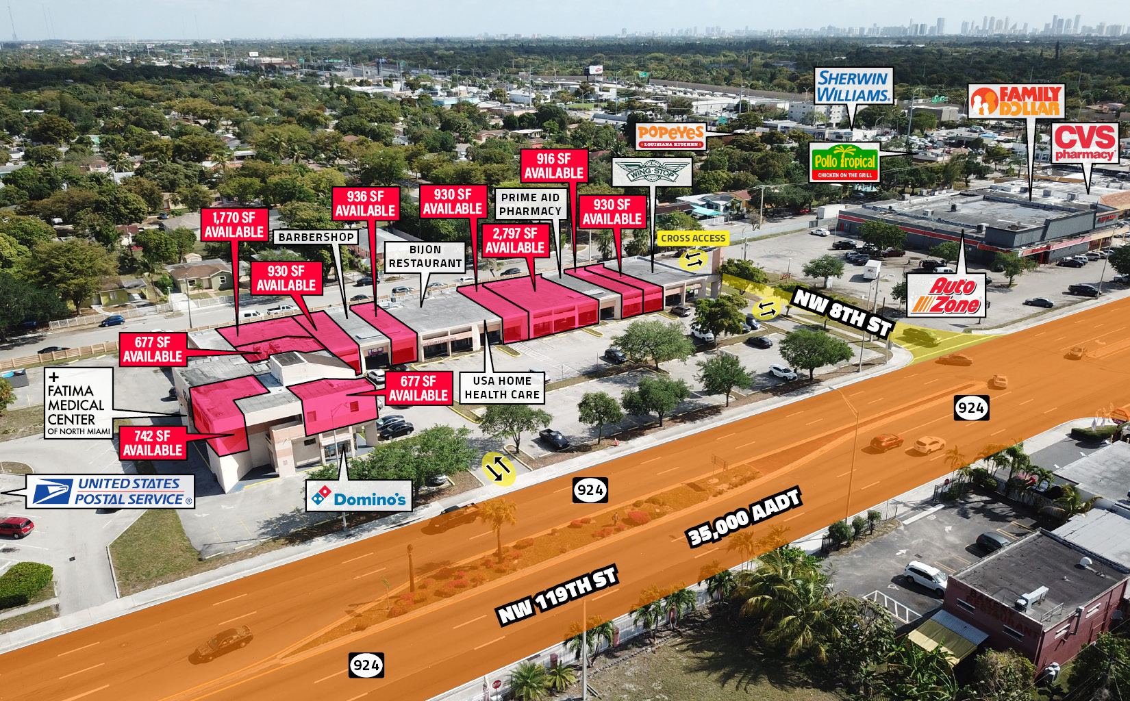 ● Frontage on NW 119th St (Gratigny Parkway) which is a major East-West commuter road connecting Palmetto Expressway and I-95