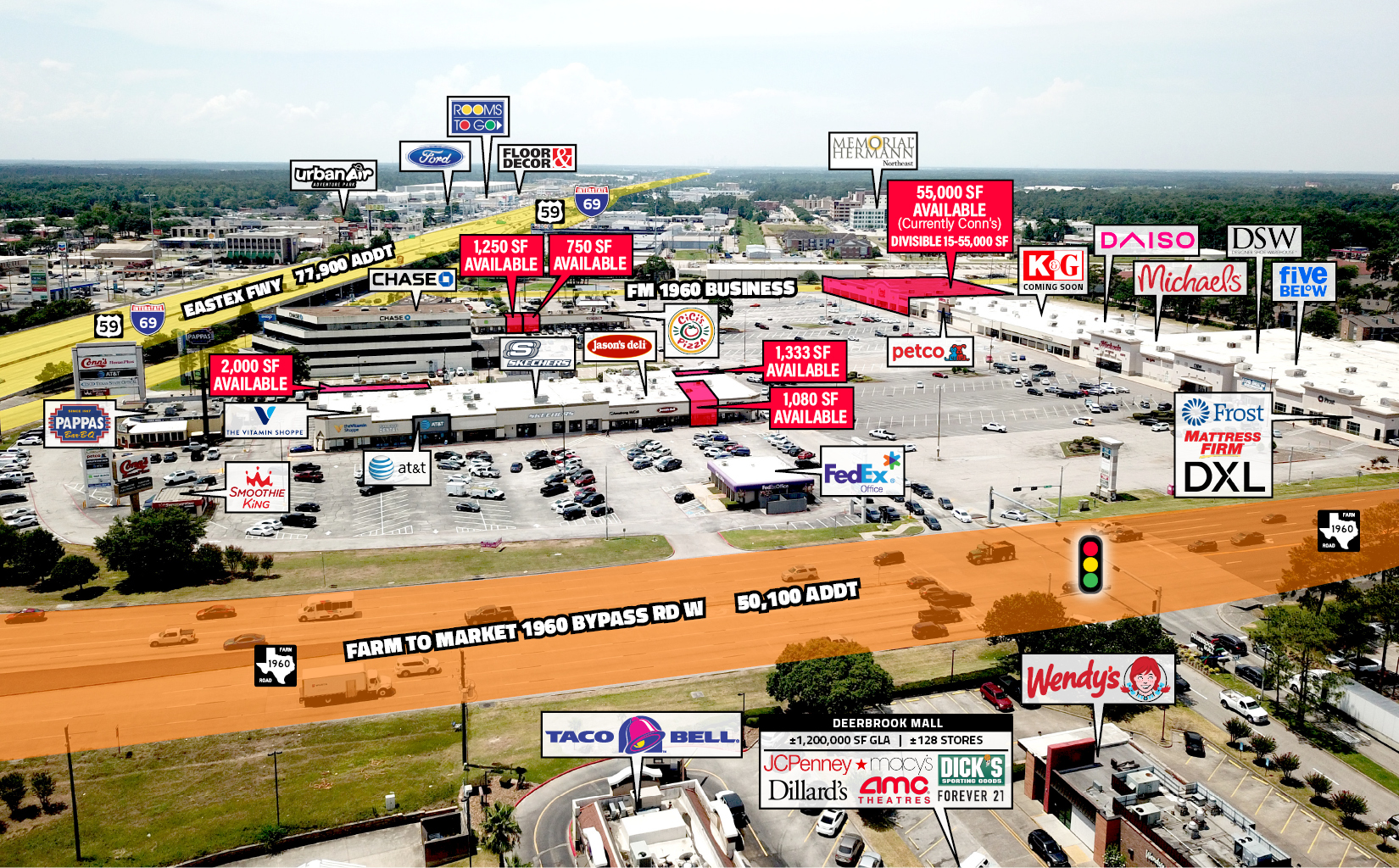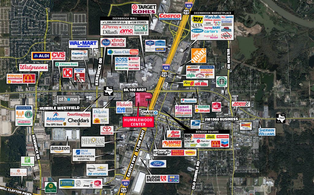 ● Located on the SW corner of FM 1960 Bypass Rd E and I-69 in Humble, TX which is NE Houston’s dominant retail intersection, directly across the street from Deerbrook Mall, a 1,212,000 SF regional mall