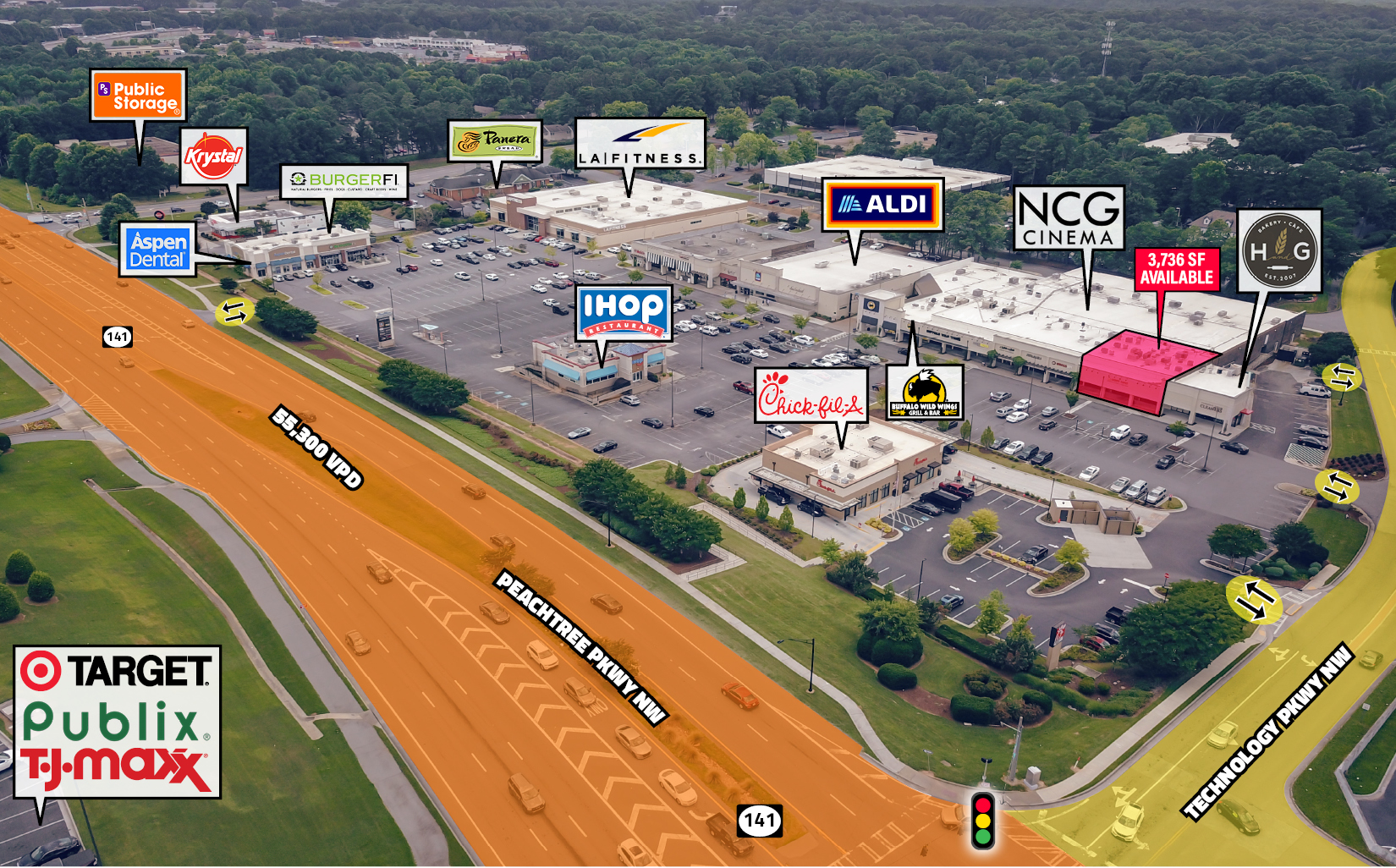 ● Visibility from Peachtree Parkway is excellent with 55,000+ cars passing the center daily