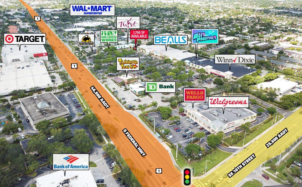 ● Situated at the heavily trafficked intersection of Federal Highway and SE 10th Street with 72,100 vehicles daily