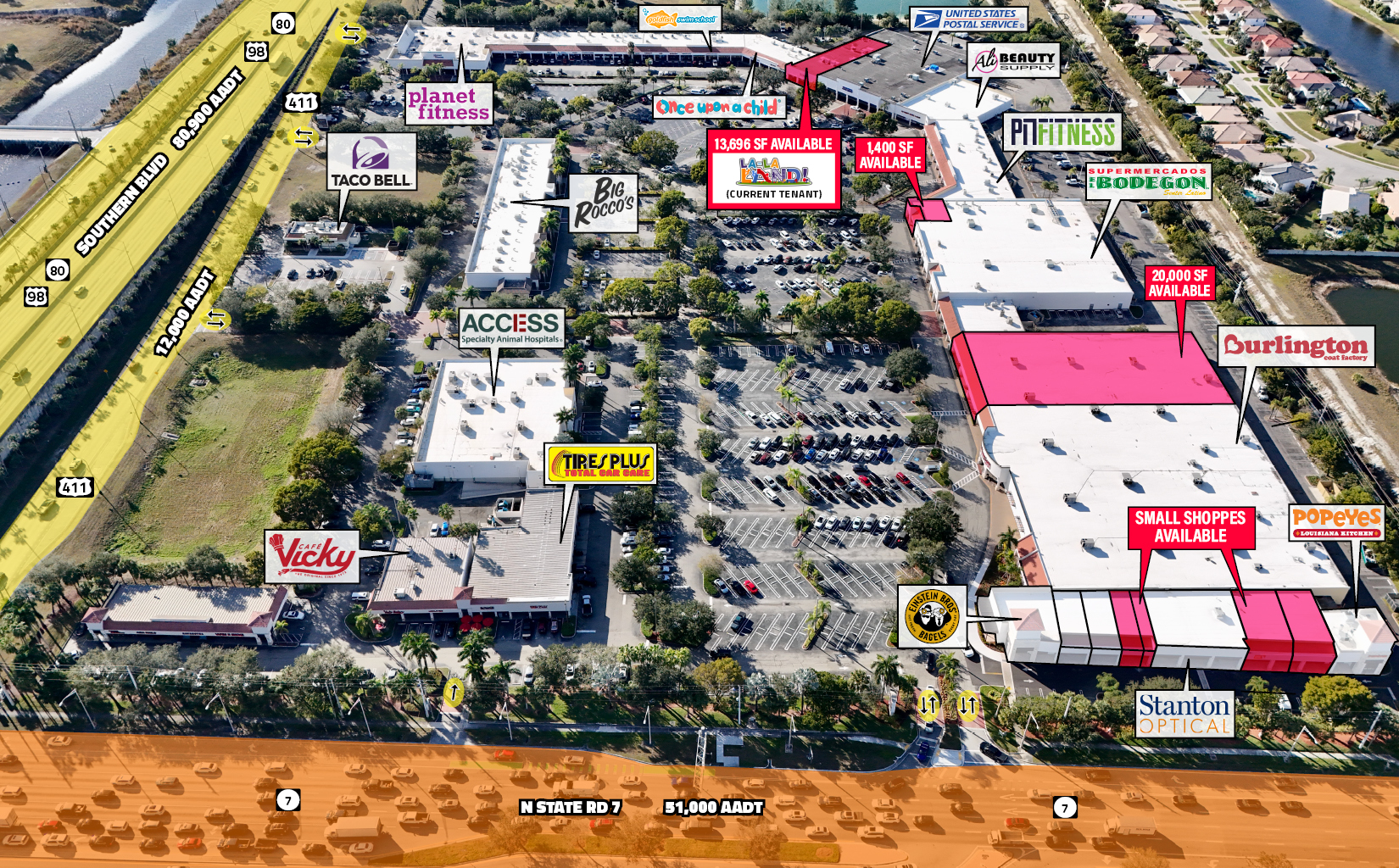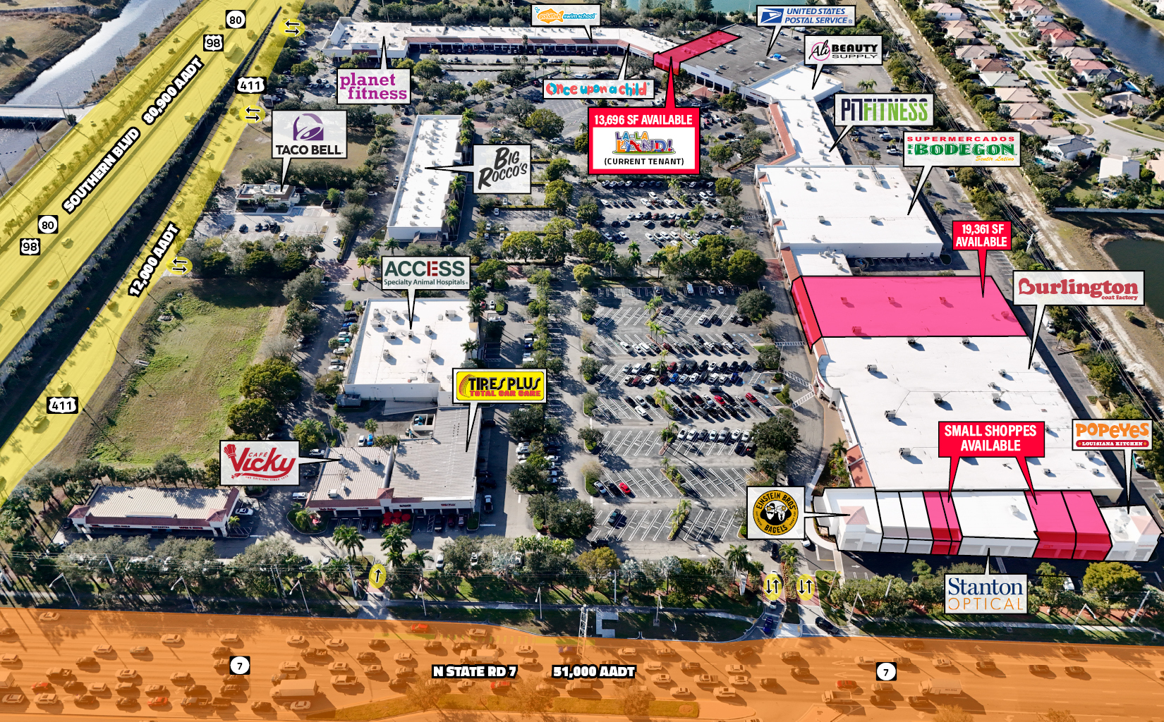 ● The center has six access points off of the heavily trafficked intersection of Highway 441 and Southern Blvd